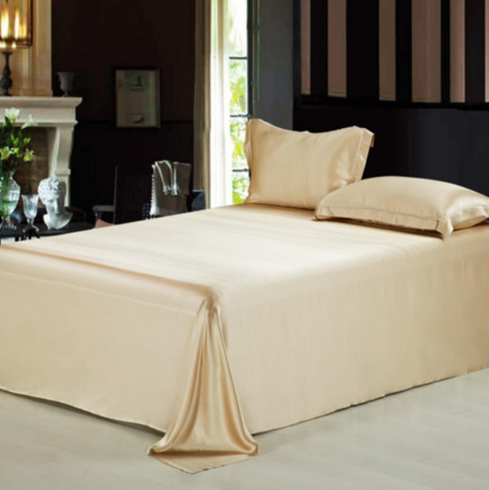 シルクの滑らかな肌触りはフラットシーツに最適。眠りと癒しはいつでも一緒。
